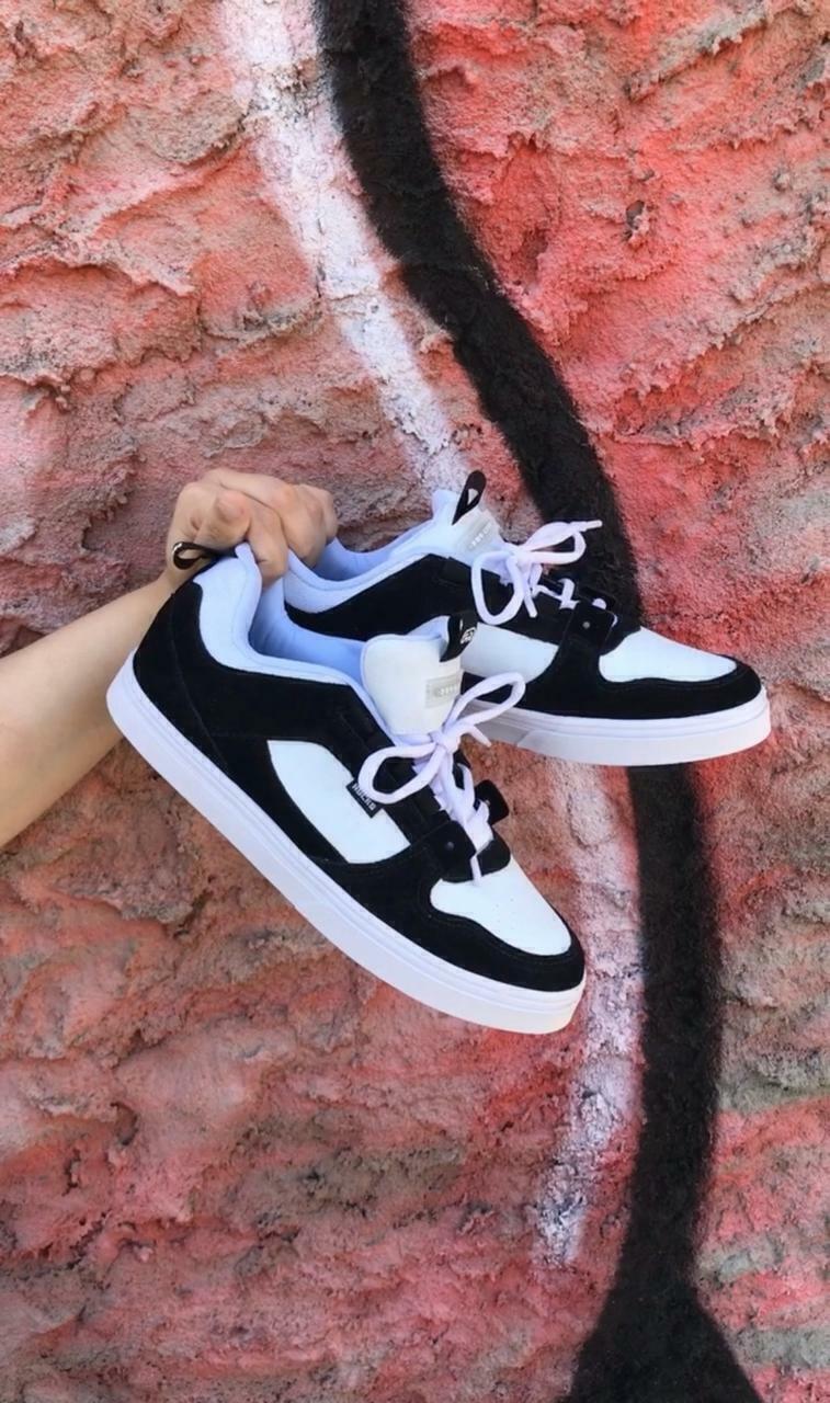 A novidade da linha footwear para pôr na lixa tem DNA da rua. Inspirado na explosão do skate, aquele POP alto que tanto gostamos. Um tênis robusto, seguro e que ao mesmo tempo te garante mobilidade e fluidez necessárias para cada manobra. Cabedal em suede natural preto e sintético PU branco, calcanhar e lingueta em nylon 100% poliéster. Tem reforço de espuma no tornozelo e calcanhar, garantindo melhor absorção de impacto e mais conforto. A língua mais “gorda” e anatômica abraça o seu pé como um todo. A biqueira e toebox tem dupla construção trazendo maior resistência para os flips e agregando mais respirabilidade para os seus pés.