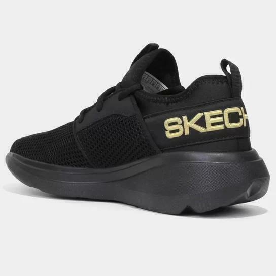 TÊNIS SKECHERS GO RUN FAST VALOR PRETO/DOURADO FEMININO