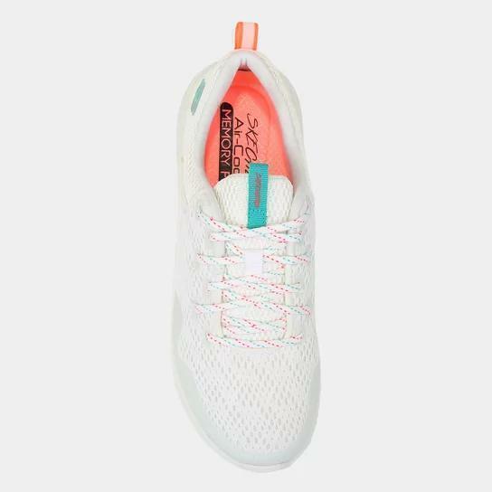 O tênis Skechers branco é indicado para uso no dia a dia. Possui material têxtil e sintético em sua composição, proporcionando conforto e durabilidade. Ele faz parte da categoria de amortecimento, o que significa que possui tecnologias para absorção de impacto e proporcionar conforto durante a caminhada. A composição do tênis inclui um cabedal em mesh, calcanhar acolchoado e fecho em cadarço para um ajuste perfeito. A entressola é feita de EVA Memory Foam, um material que se adapta ao formato do pé e oferece um excelente amortecimento. O solado é de borracha, proporcionando aderência e tração.